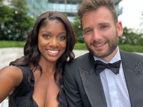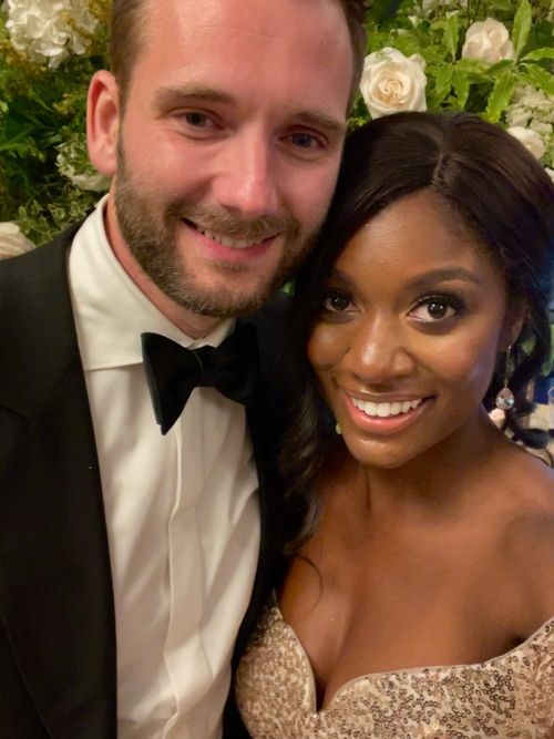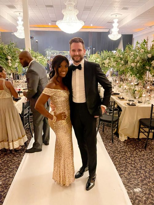 Cliff and Domonique’s love story began over two pizzas and a bottle of wine on a 2020 summer day in Harlem. Introduced by their dear friends Daphney and Mychel, Cliff made the trek from Brooklyn to Harlem to meet Domonique for dinner. As neither of them wanted the date to end, they hopped from bar to bar that evening, sharing laughs and endless stories. Little did they know that this spontaneous date night at the height of the pandemic would change their lives forever.